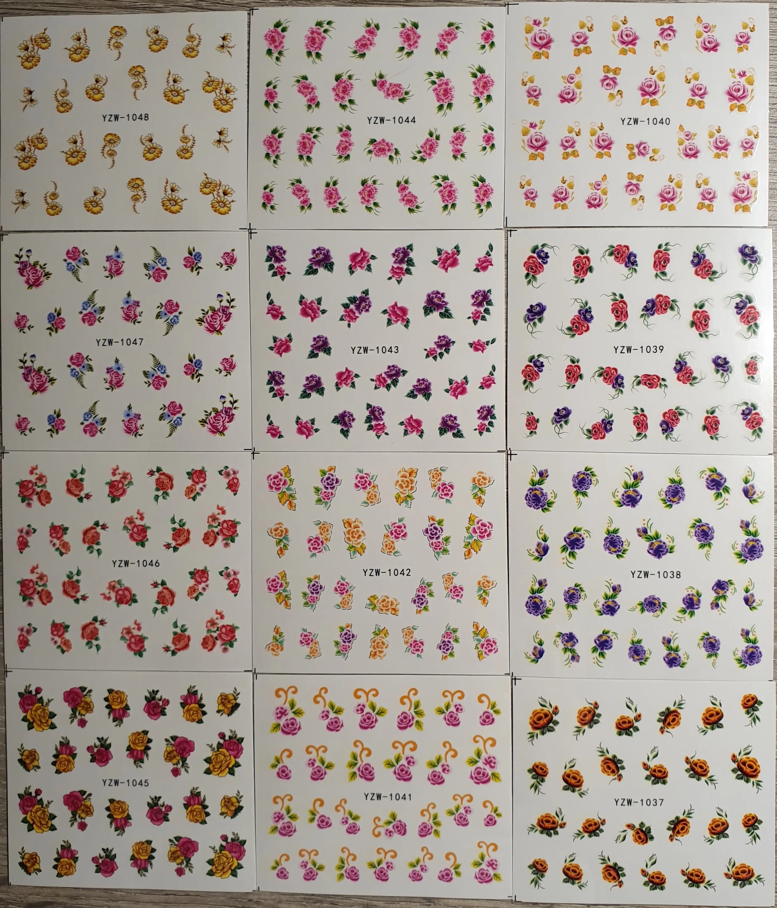 Наклейки для ногтей WUF, 60 листов, с цветами