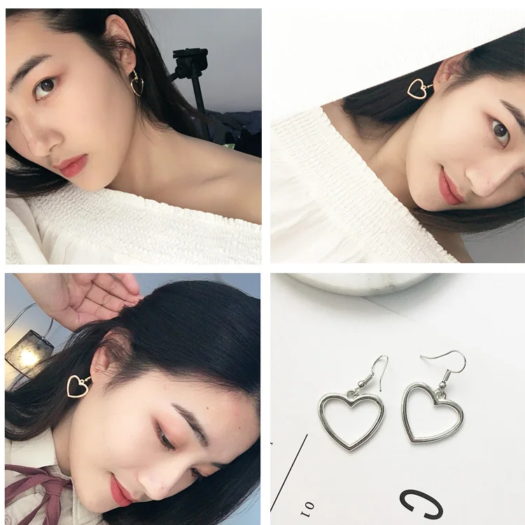 Женские Геометрические серьги, полые серьги золотистого цвета в форме сердца, 2017