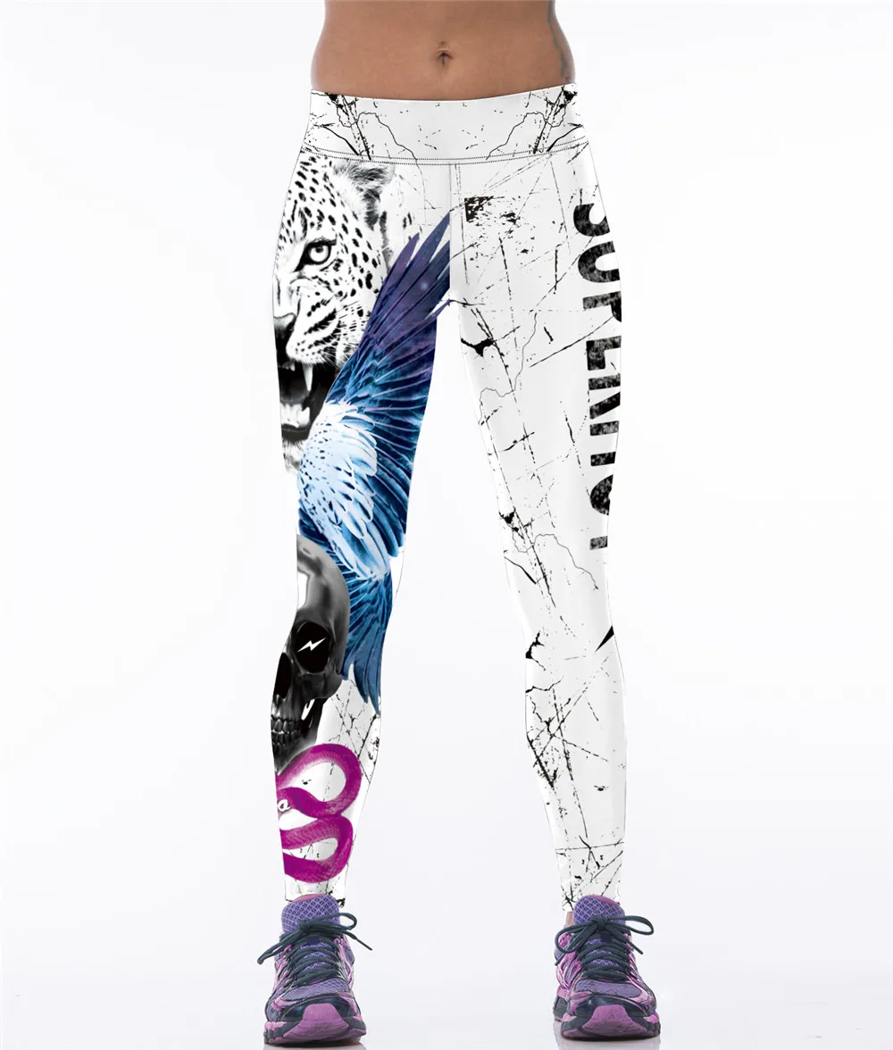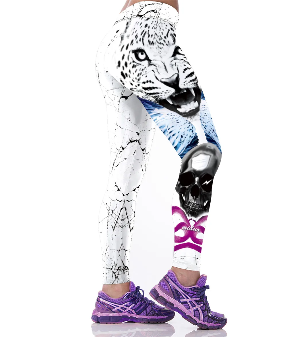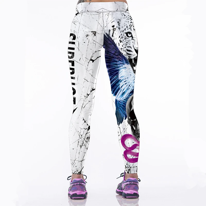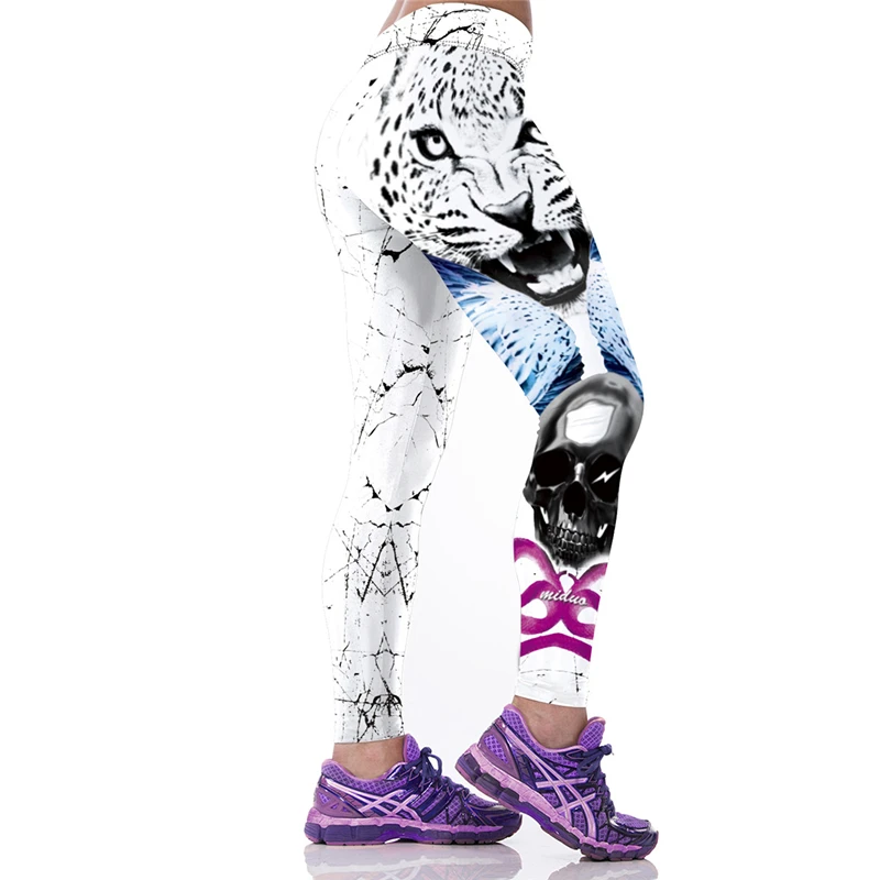 Сексуальные женские спортивные Леггинсы, белые с 3D леопардовым принтом, высокая талия, эластичные быстросохнущие штаны для бега, обтягивающие джеггинсы для фитнеса