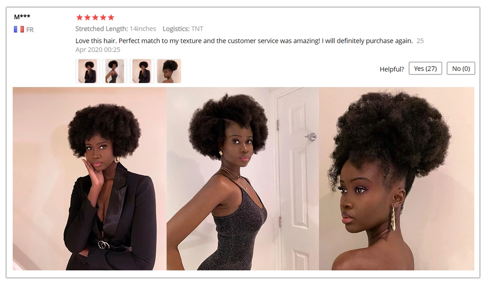 Love the hair extentions, exact match to my curls! And seller kept me informed of the progress of the order. Fast delivery! Very happy with my purchase.