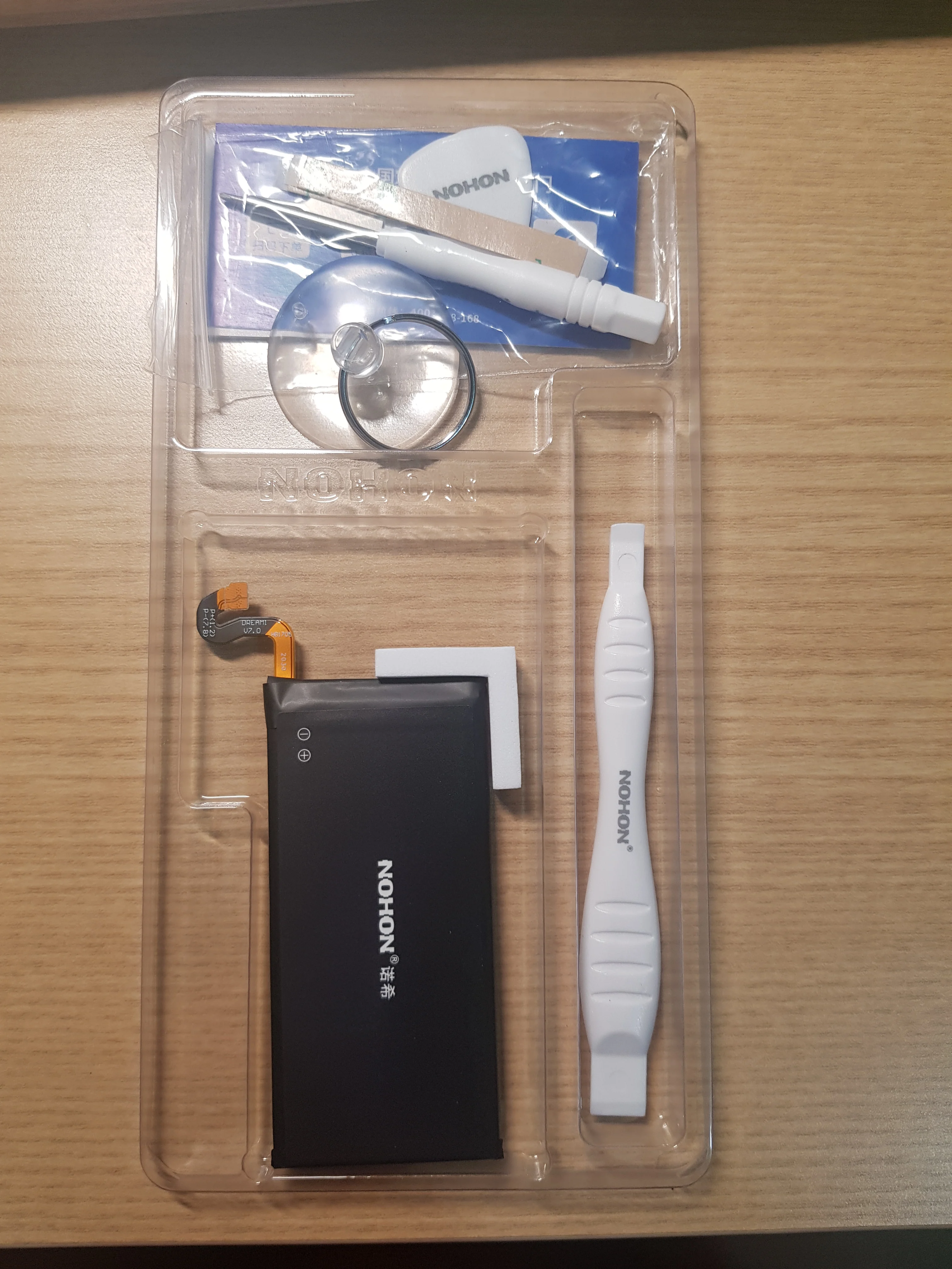 Я должен признать, что я думал, что отгрузка была потеряна, потому что я собирался сделать почти два месяца с момента размещения заказа, и у меня не было никаких новостей об этом. Первое, что приносит мне внимание, это единственное, что производитель Nohon помещает в презентацию своего продукта и инструментов, которые сопровождают пакет, тщательно запечатанный. Эта упаковка обеспечивает собственную батарею, пластиковую палку, звездную отвертку и информационную брошюру (предположительно инструкции, я еще не открыл ее). Кроме того, внутри картонной коробки есть двухклейкая стелька для идеального закрытия мобильного телефона. Это не Оригинальный аккумулятор Samsung, но этот бренд (уже известный мной раньше) производит очень качественные аккумуляторы, эквивалентные заводским устройствам или даже лучше... Они вообще не разочаровывают, поэтому, в отличие от других батарей, которые могут быть достигнуты на AliExpress, которые «говорят, что они являются» оригинальными, или напрямую не имеют бренда, Они превосходны