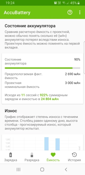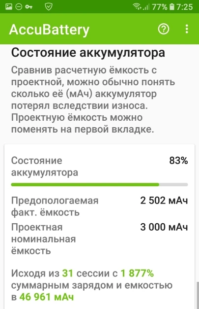 хороший аккумулятор. программа показывает ёмкость 3100