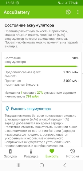 Доставка в Латвию в течение двух месяцев. Наличие инструментов в комплекте порадовало. После нескольких циклов зарядки-разрядки скажу, что ёмкость 2571 mAh немного ниже заявленной 3000 mAh. А через месяц использования состояние батареи оценивается в 83 процента. Но это значительно лучше, чем моя старая батарея. Ёмкость старого аккумулятора, купленного в ларьке на рынке, через пять месяцев снизилась с 65 процентов до 50. Хотя он выглядел как оригинальный аккумулятор Samsung и даже дата изготовления стояла июль 2019. И стоил в два раза дороже этого (25 евро). Короче нае**ли.