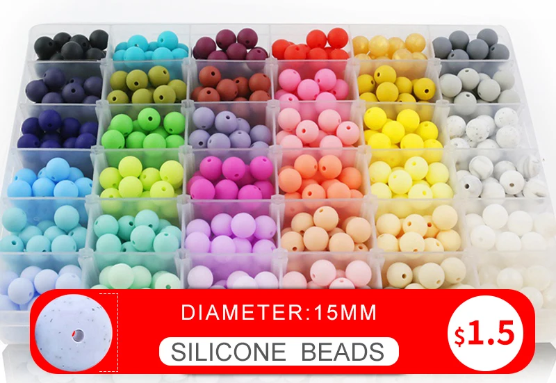 50 шт., силиконовые бусины для прорезывателя зубов, 15 мм