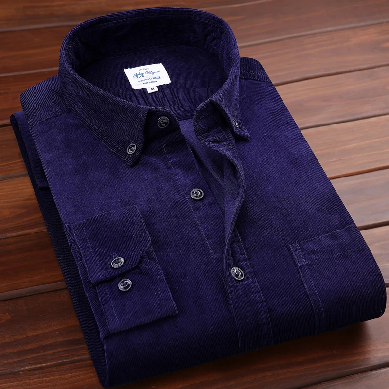 Весенняя Мужская Вельветовая рубашка, 100% хлопок, длинные рукава, приталенная винно-красная, высокое качество 4XL