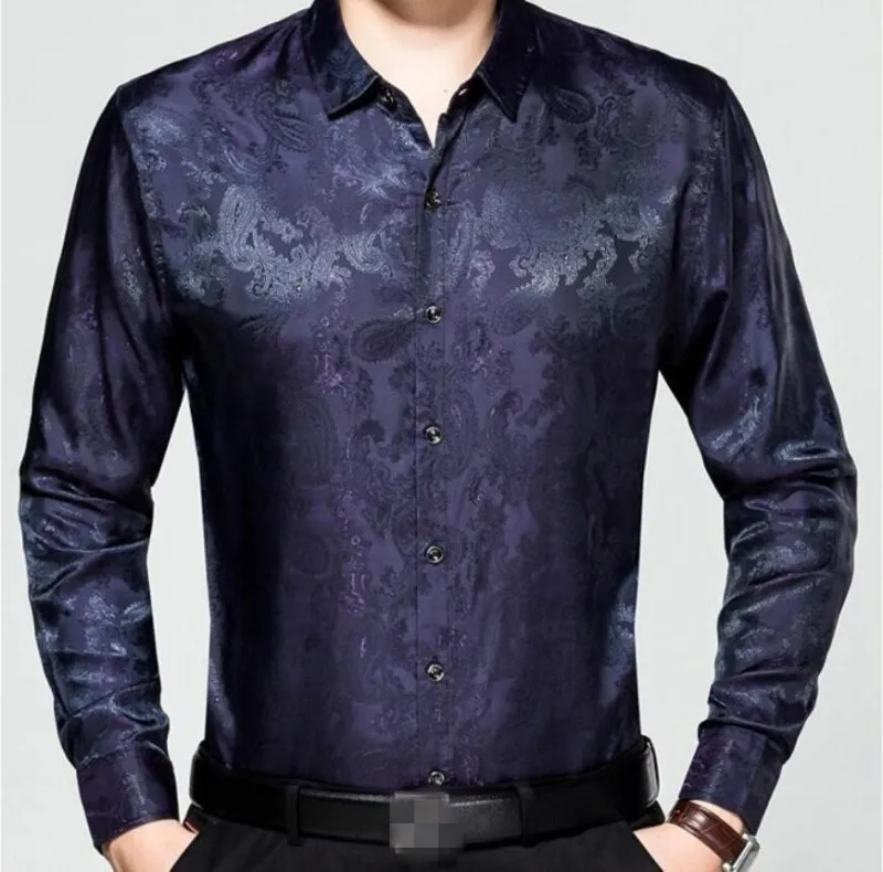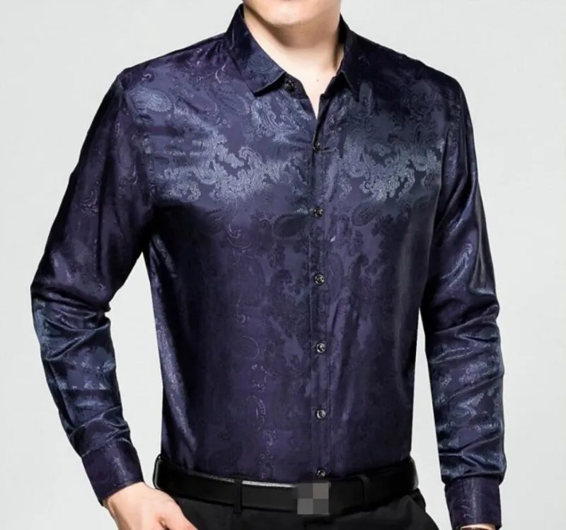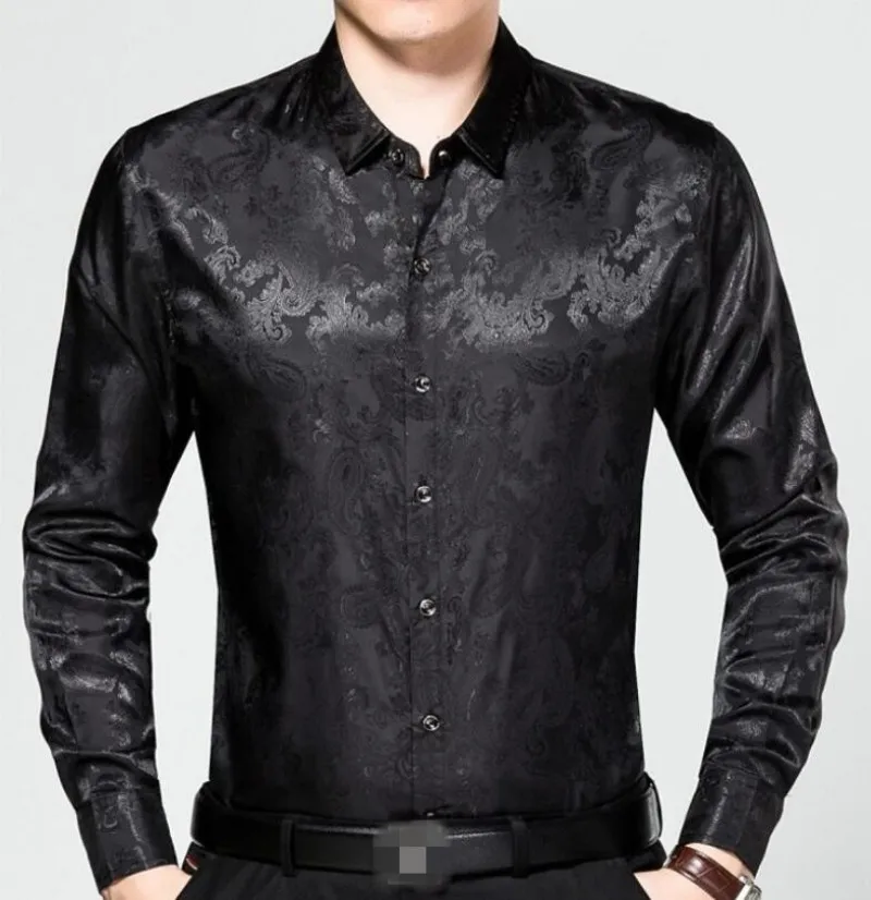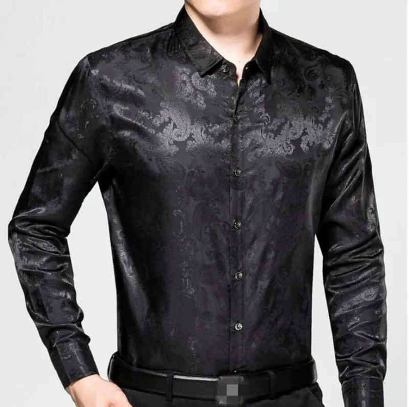 Новое поступление, мужские шелковые тонкие рубашки, для мужчин, деловые, классические, с цветочным принтом, мужские топы, весна для отдыха, с длинным рукавом