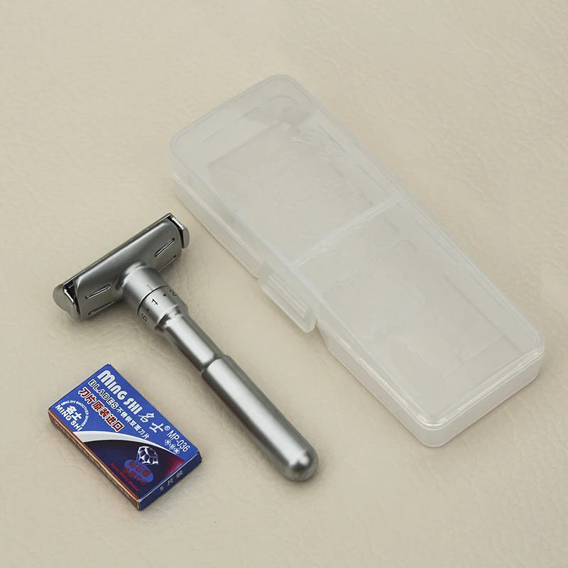 MINGSHI Полный Сплав Цинка Безопасной Бритвы Для Мужчин Регулируемая 1-6 Файлы Бритье Classic Double Edge Бритвы + 5 лезвия + 1 бритва эпилятор опасная бритва электробритва