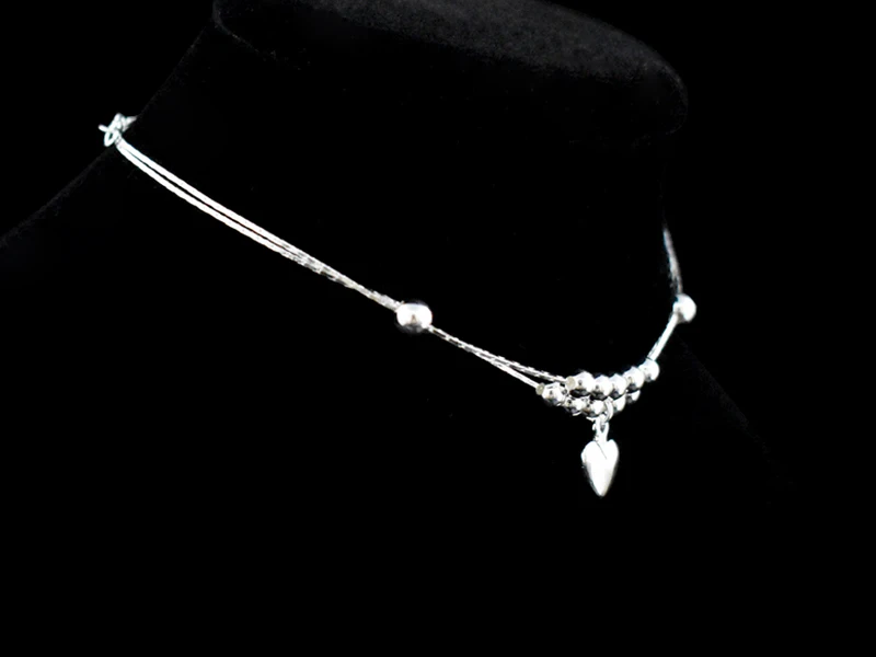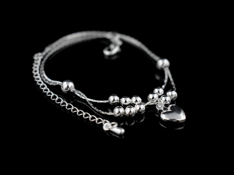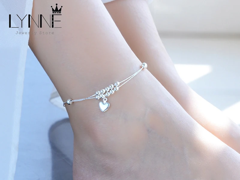 Женский ножной браслет из стерлингового серебра 925 пробы, ножные браслеты-цепочки с подвеской в виде сердца, ювелирные изделия