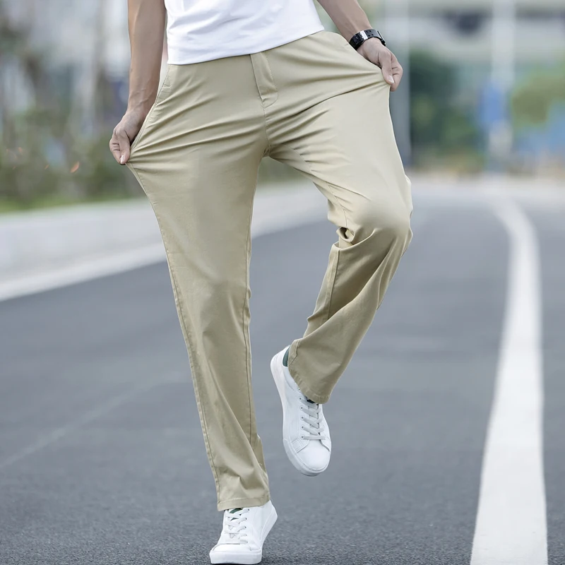 Мужские летние брюки, светильник, высокая талия, хаки, прямые брюки, мужские трендовые 2022 стильные хлопковые Стрейчевые повседневные винтажные черные брюки
