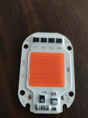Чип пришел физически целым. Но при фото матрицы, сразу после выключения, видно неравномерное остаточное свечение кристаллов (см. фото). На радиаторе от процессора после часа работы температура подложки менее 40 С. Более 5 летний опыт эксплуатации 10-20 вт. светодиодов показывает, что при такой неравномерности свечения кристаллов при выключении питания или питании малом током (которые с внешним драйвером) происходит быстрая деградация кристаллов. Срок работы может быть от 1 часа до как повезет. Обычно сгорали менее чем за 50-100 часов. С относительно равномерным свечением эксплуатируются 7 шт. более 5 лет, не в пример LED ламп. Так, что каждому самому решать брать или не брать у данного продавца.