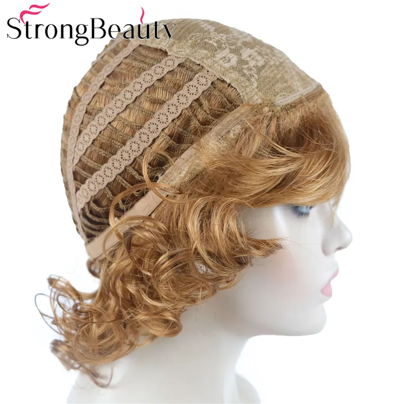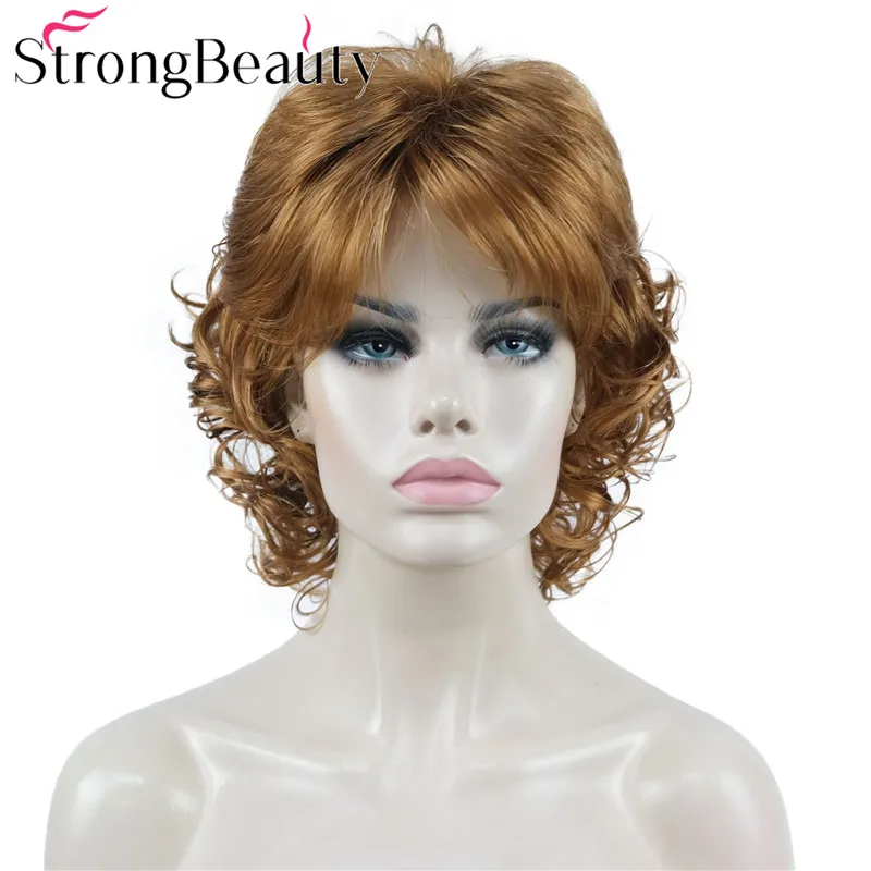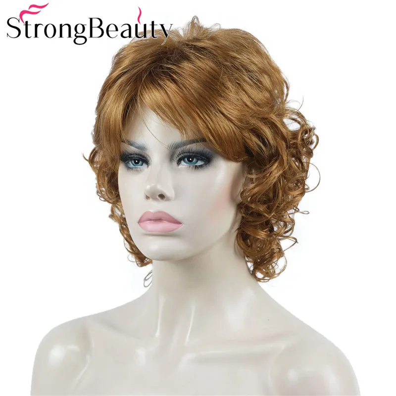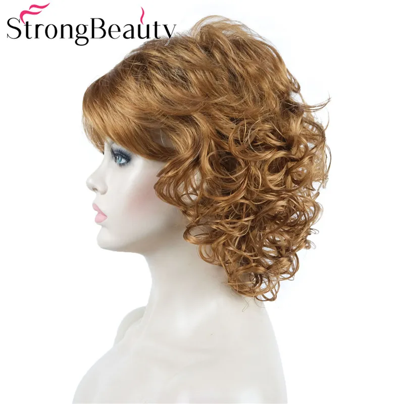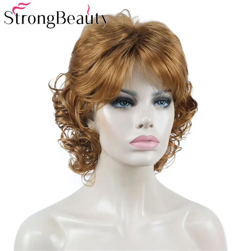 StrongBeauty средние короткие вьющиеся парики синтетические женские волосы блондчерныйбордовый много цветов на выбор