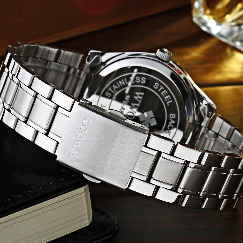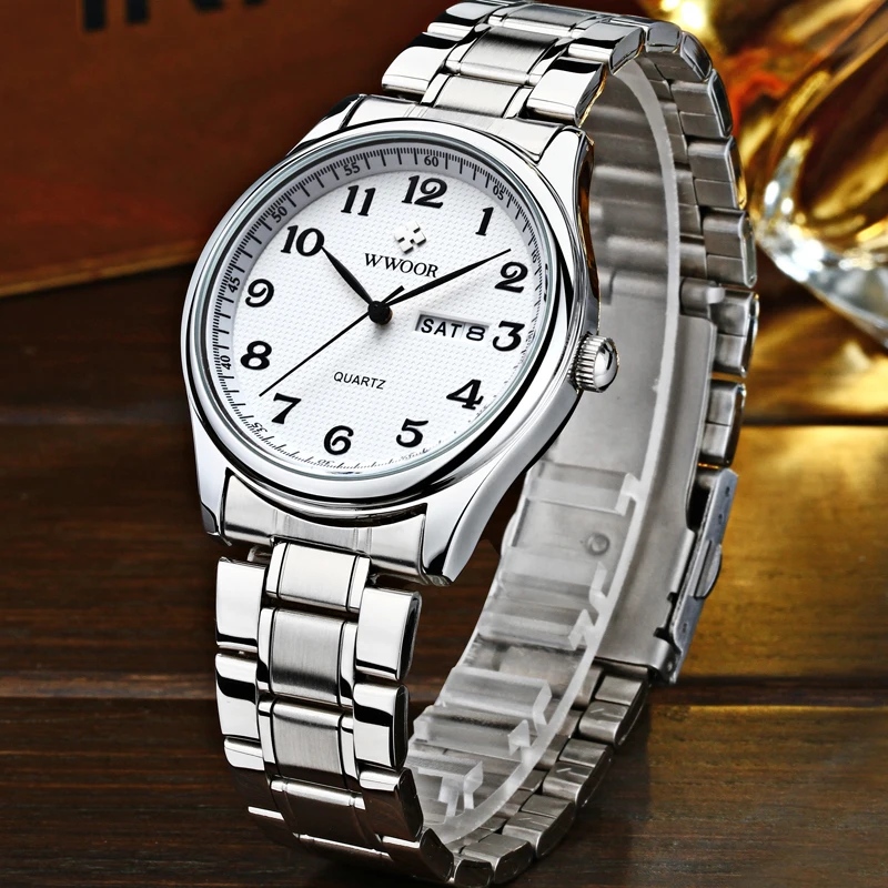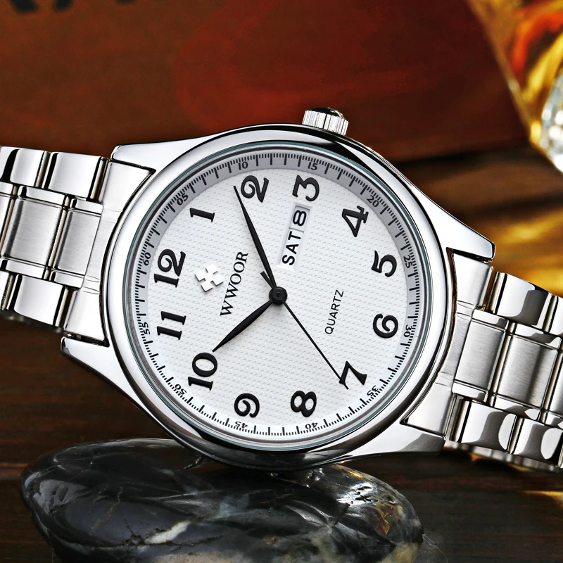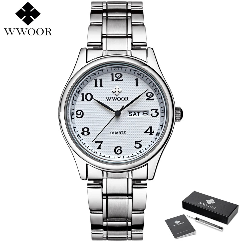 Часы WWOOR Мужские кварцевые аналоговые, брендовые Роскошные водонепроницаемые из нержавеющей стали, с датой, серебристые