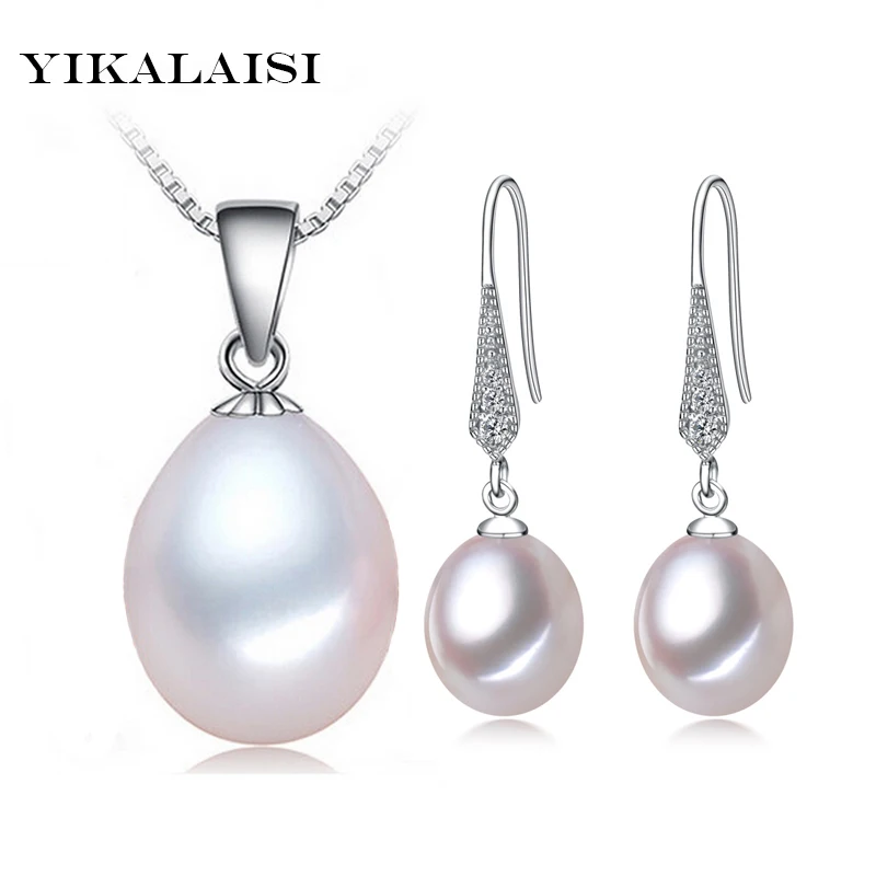 YIKALAISI, цепочка из стерлингового серебра 925 пробы, натуральный пресноводный жемчуг, кулон, серьги-капли, модные комплекты ювелирных изделий для женщин, 8-9-10 мм, жемчуг