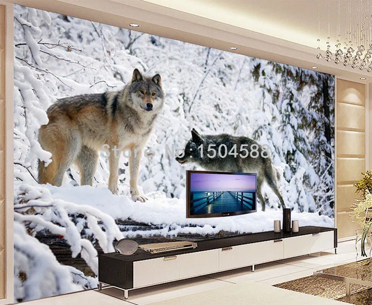 3D-обои, Современные Простые настенные росписи с изображением снега, волка, снега, пейзажа, гостиной, ТВ, дивана