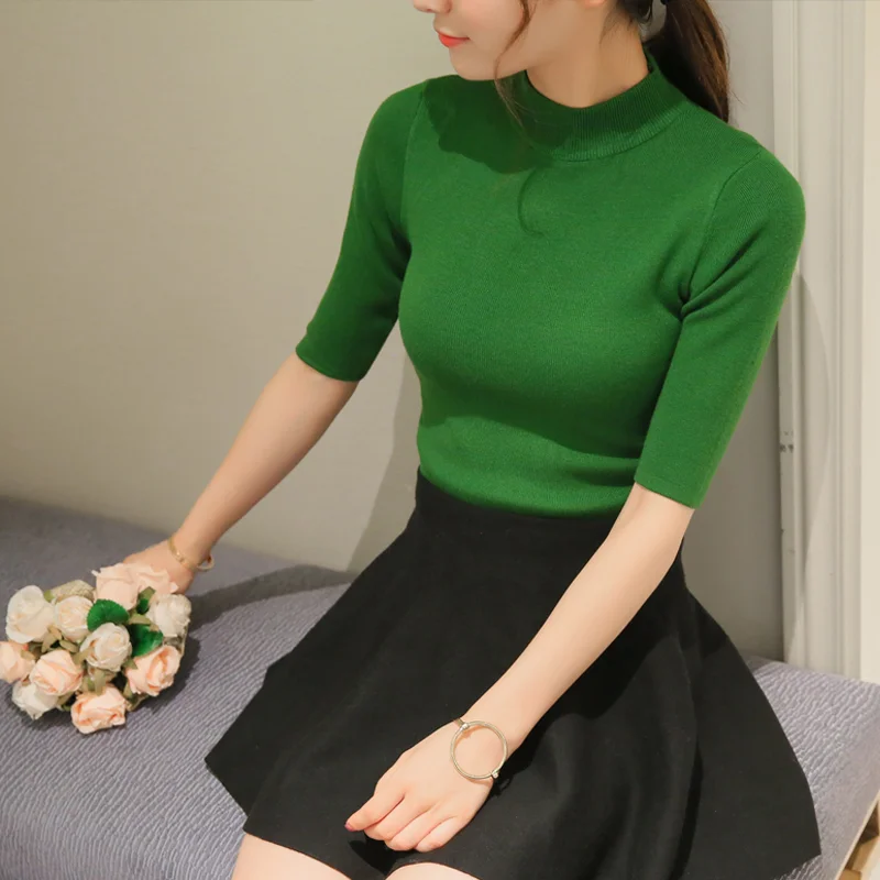Новинка Весна 2021, корейский однотонный эластичный тонкий свитер O...
