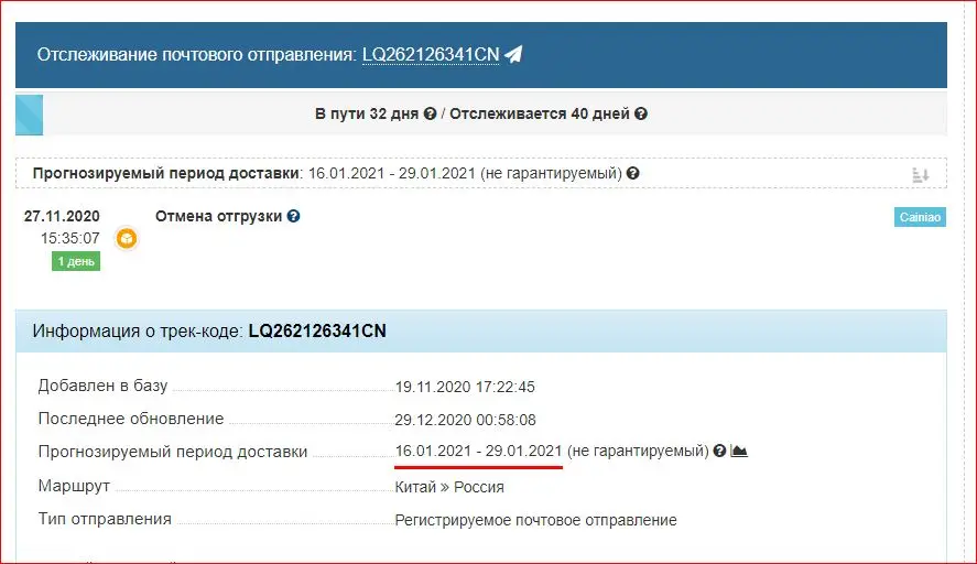 заказывал товар из России, с доставкой в ноябре 2020 года, продавец отправил заказ только в декабре из Китая. Товар получил на 3 месяца позже, указанного при выборе продавца.