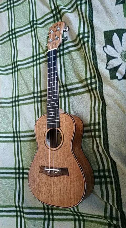 Балдежная гитара. Доставка 3 дня. Высота струн в порядке. Очень красивая и приятная на ощупь. Пахнет деревом. Порадовало, что задняя дека сделана не прямой, а скругленной, чтобы звук был ярче. Если умеете играть на акустике, то с этой четырехструнной за 10 минут справитесь.