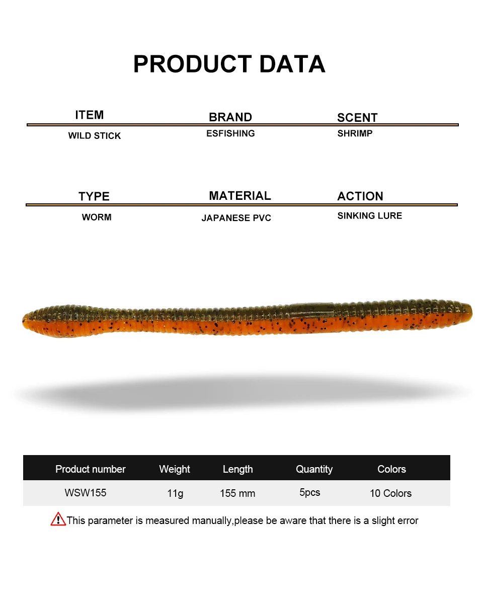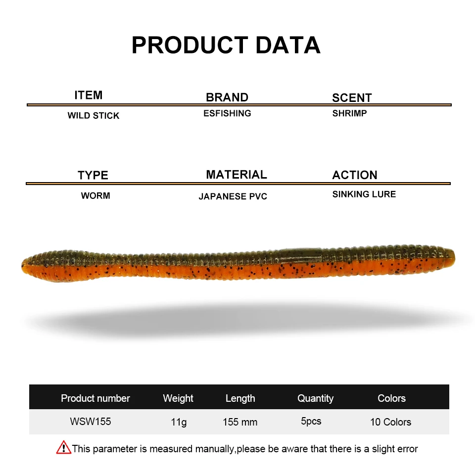 ESFISHING Мягкая приманка в виде червя, 150 мм, 11 г, 5 шт., рыболовные приманки червяк, мягкие приманки для рыбалки, снасть для ловли карпа, приманка для форели