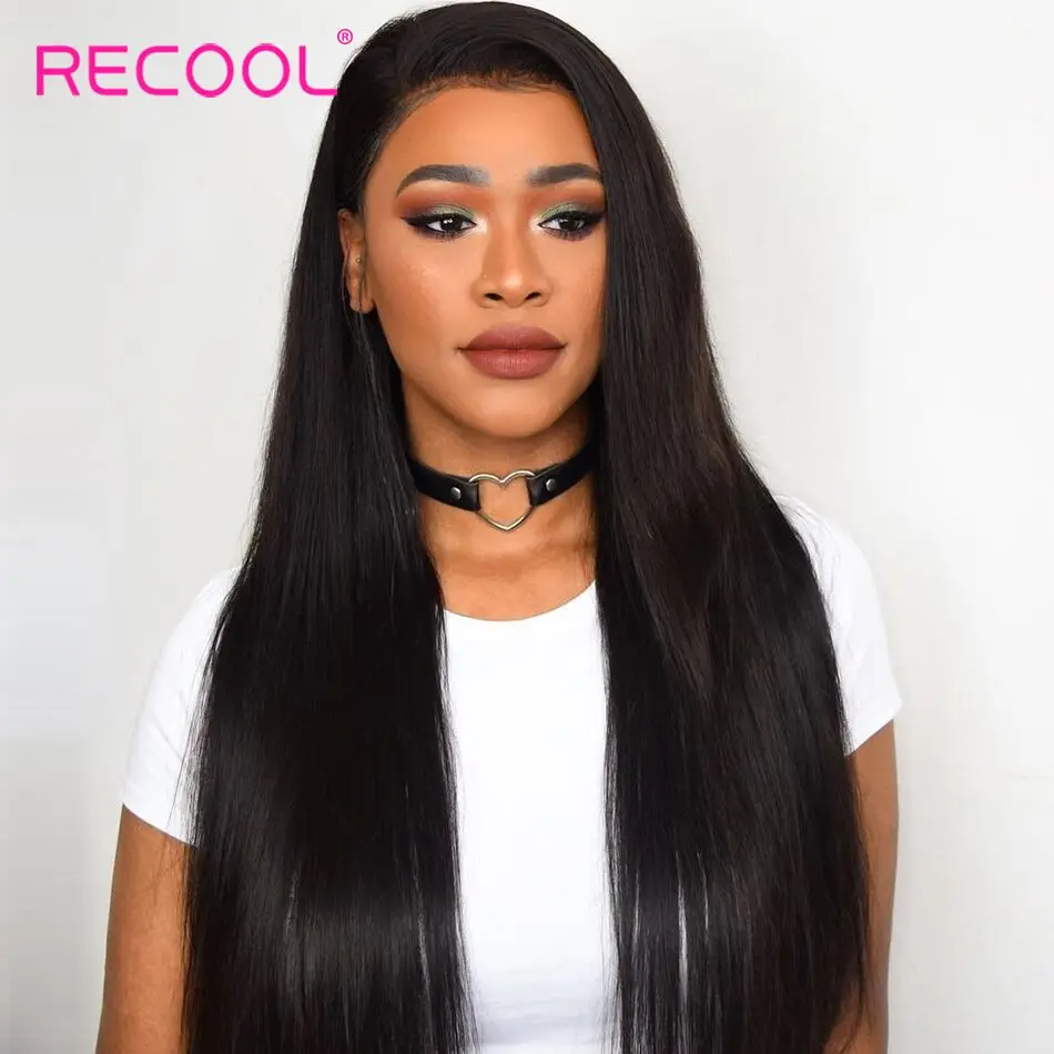 Recool волосы перуанские прямые пряди волос с фронтальной 3 пряди с фронтальной кружевной застежкой натуральный цвет Remy человеческие волосы