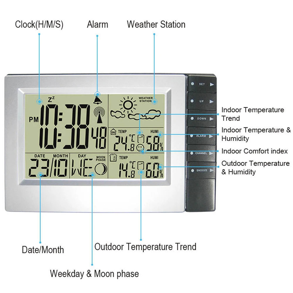Диапазон влажности в помещении и на улице: 20% ~ 95%Резолюция 1%