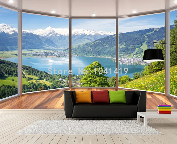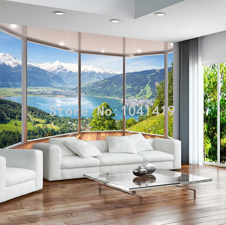 Настенные 3D-обои на заказ, современные креативные обои с изображением балкона, французского окна, природного ландшафта, фотообои для гостиной, спальни, домашний декор