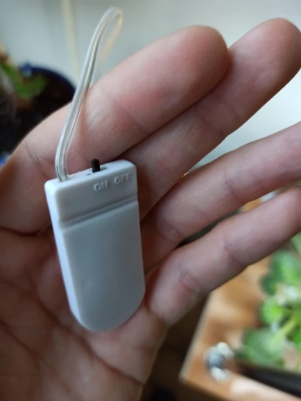 заказ прийшов дуже швидко. проволока мідна покрита лаком на ній маленькі світлодіоди кольорові. має кейс на дві батарейки 25х32.все працює продавця рекомендую.
