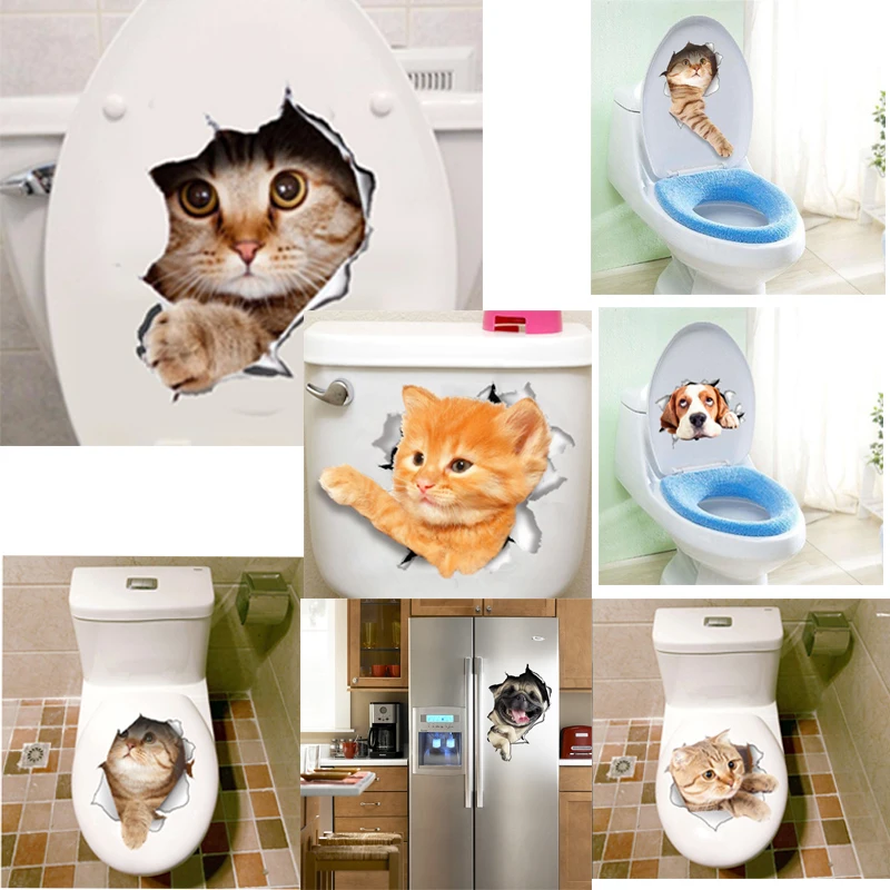 3D яркие кошки собаки настенные стикеры Туалет дверь холодильник компьютер ванная комната Декор стены настенные наклейки с животными художественный постер панно