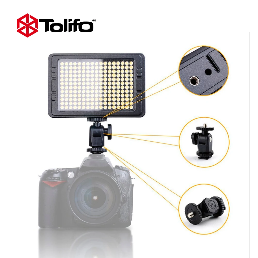 Tolifo PT-204B двухцветный светодиодный светильник для видеокамеры с 204 ультра яркими светодиодными лампами с регулируемой цветовой температурой и низким энергопотреблением, выход составляет всего 6 Вт. На фото-и видеокамеры светильник PT-204B может быть установлен на внешней вспышки типа Горячий башмак адаптер или мини-штатив, и светильник угол может быть скорректирована. Также яркость регулируется диммером на задней панели, и процент яркости правильно отображается на светодиодный экран. Светодиодный светильник для видеокамеры-хороший компаньон в путешествии по фотографии.