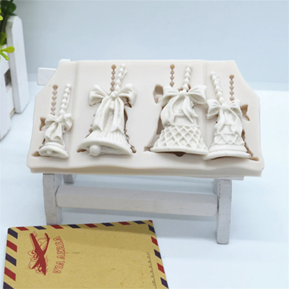 1 шт., рождественские колокольчики, форма для торта, силиконовые 4 колокольчика, помадка, инструменты для украшения торта, конфеты с Рождеством, шоколад, форма FM1287