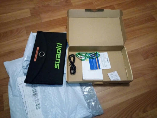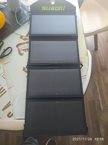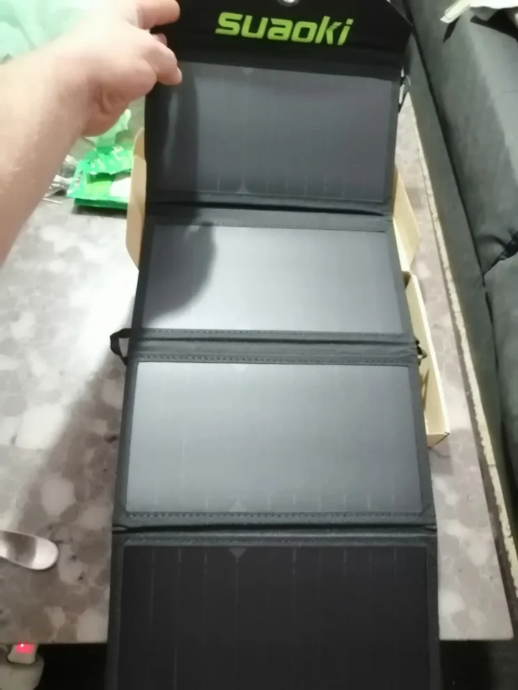 Товар пришёл за 1 месяц и 1 неделю. Солнечную панель планировал купить для путешествий, по скольку сейчас в нашей стране зима, то тестировал в пасмурную погоду. Минусы: В пасмурную погоду не заряжает совсем, лампочка загорается и сразу же тухнет, если вы будете в движении - то зарядка идти не будет, нужно что бы панель была в неподвижном состоянии. Поставил на зарядку планшет с 12% аккумулятора, за 8 часов она не только не зарядила планшет, но он ещё и сел до 4%. Вообщем выводы такие: если погода будет солнечная - то панель будет заряжать, но не на 25w как заявлено, а 21w, а если погода будет пасмурная или же ранняя осень/поздняя зима, тогда эта вещь будет лишняя в вашем рюкзаке. Плюсы и так понятны, это автономность при солнечной погоде.