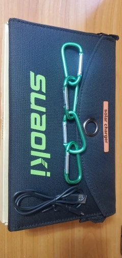 В пасмурную погоду естественно почти не фурычит (главное не тестировать через оконное стекло, но мешает зарядке), жду солнечных дней для полноценного теста. Товар укомплектован 4-мя карабинами, что весьма удобно. Брала по написанных отзывам, в принципе устраивает.