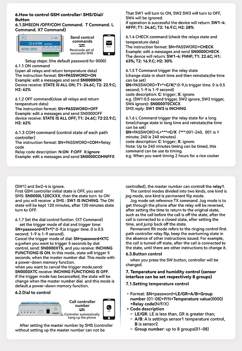 GSM SMS Пульт дистанционного управления 4-канальный Релейный переключатель CL4-GSM поддержка контроля температуры и влажности сигнализация