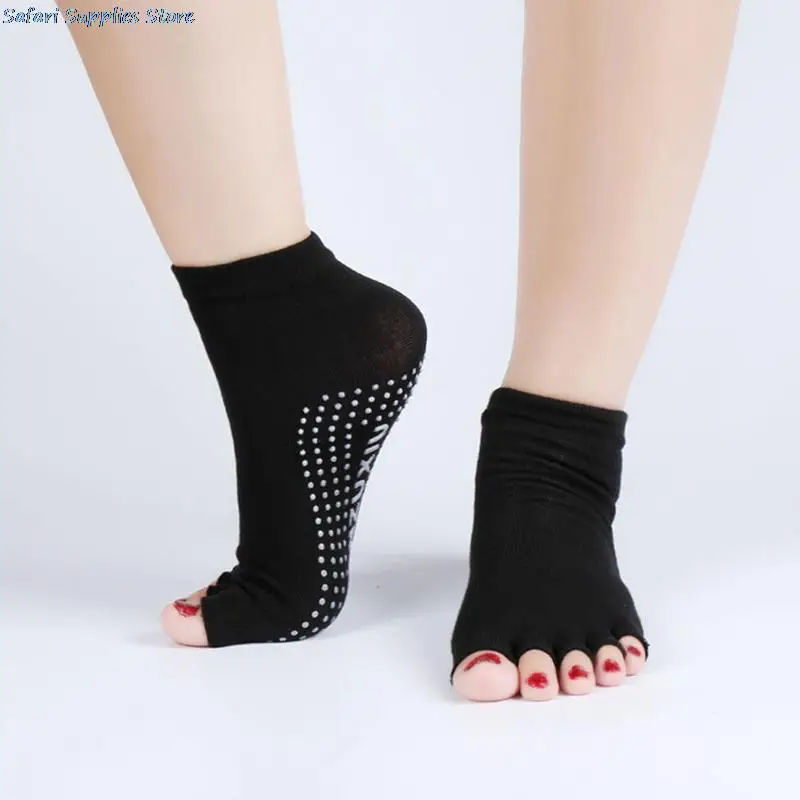 1 пара, носки для йоги с полуноском, Нескользящие, с открытым носком, противоскользящие, для пилатеса, лодыжки, прочные, открытые, с половиной пальцев, хлопковые носки для йоги