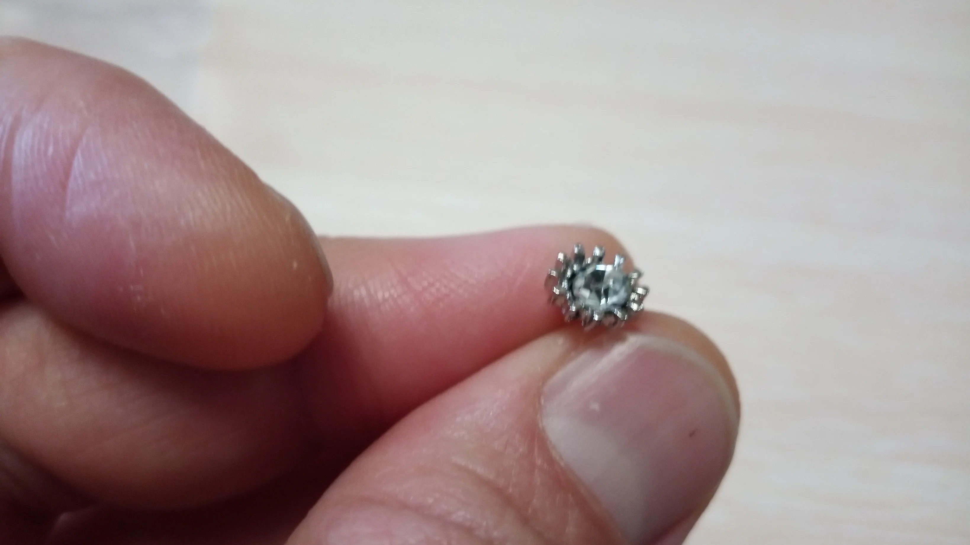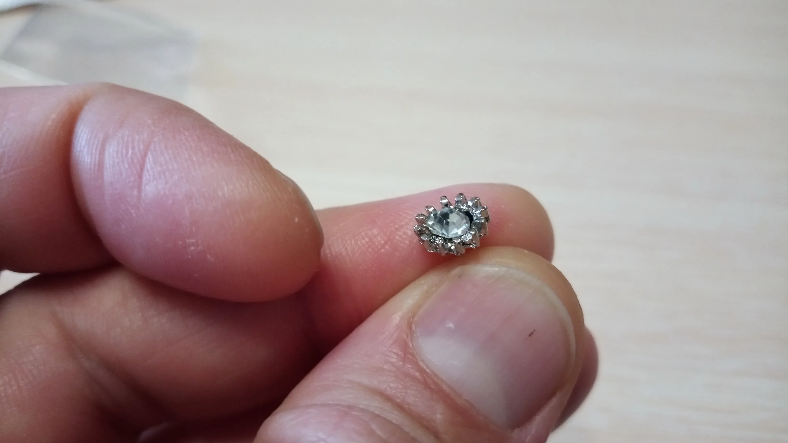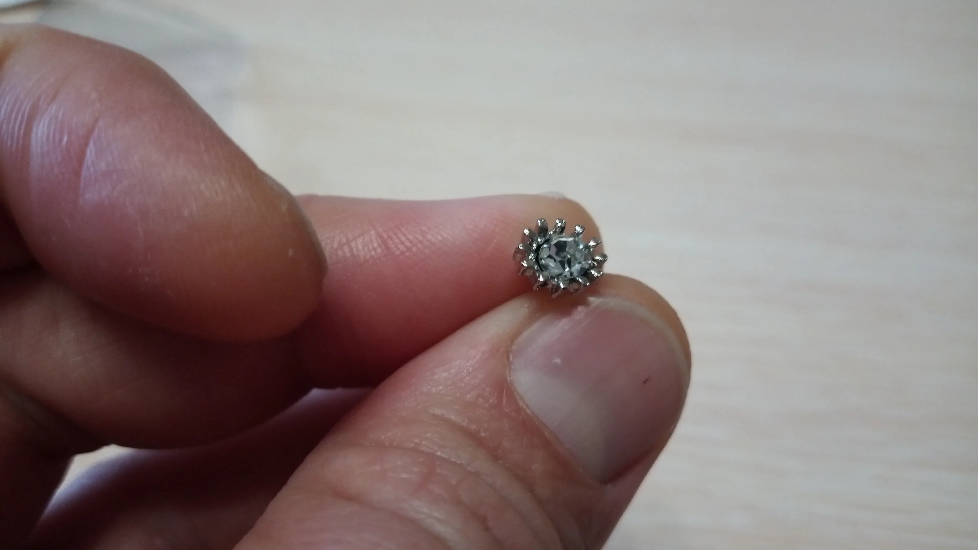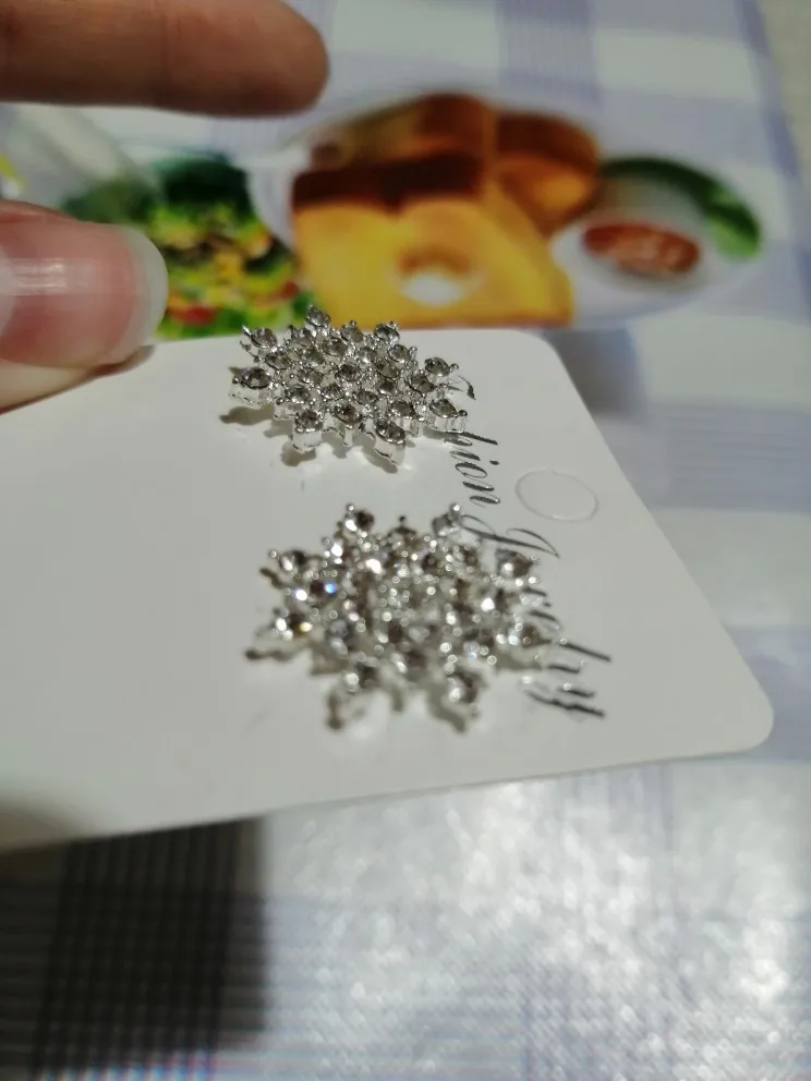 Маленькие гвоздики, аккуратные, стразы закреплены хорошо, имитация жемчужины.