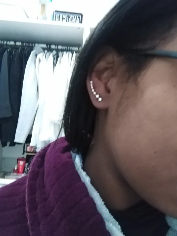 Серьги очень милые и лояльные к картинке в описании, ли я купил второй раз, потому что он потерялся долгое время назад. Они очень удобные, потому что имеют два отверстия таким образом, чтобы идеально соответствовать размеру вашего уха. Рекомендуется!