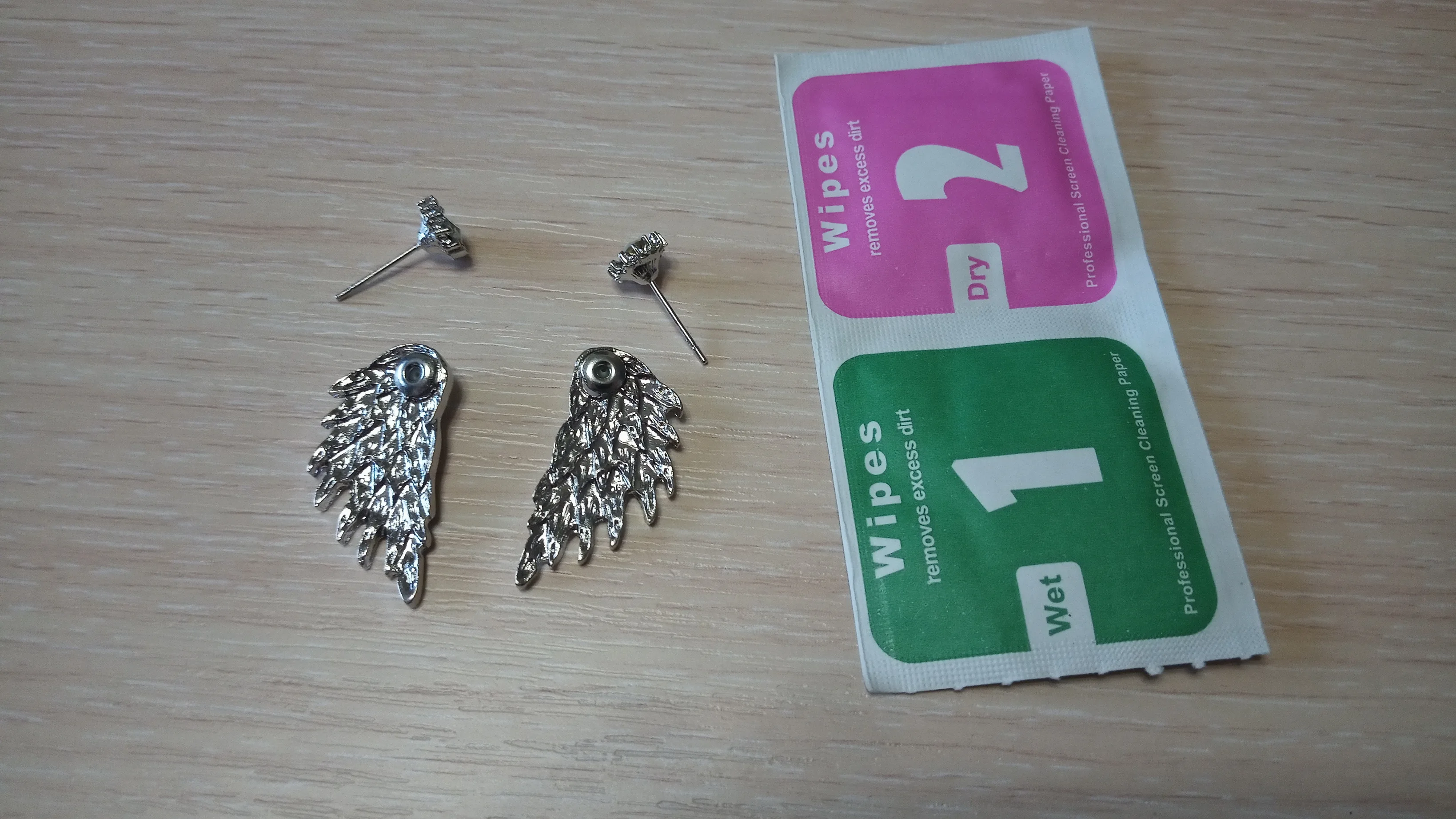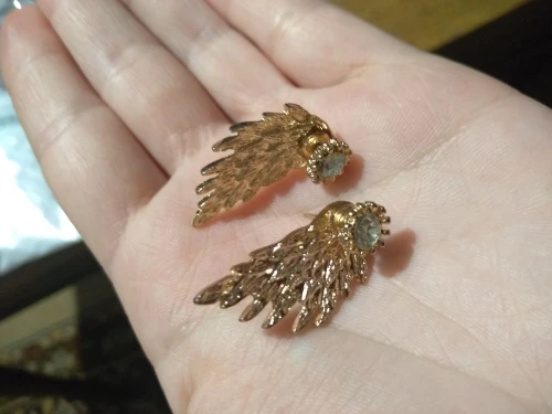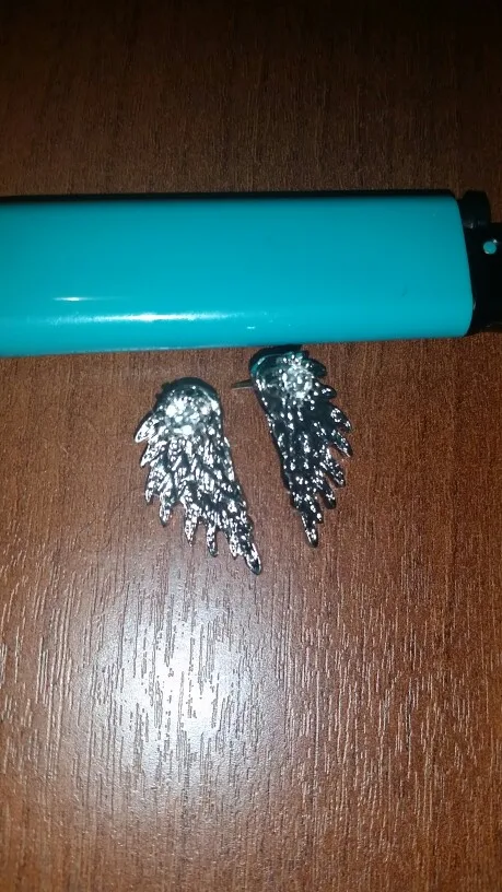 Доставка мега быстрая-2 недели. Продавец положил две малюсенькие салфеточки , очень приятно и актуально на сегодняшний день.про сами Серги .. Ну конечно грубое исполнение,но другого и не следовало ожидать за такие деньги (49,32₽). На одном крылышке косяк, темное пятно. А так не плохо,интересный дизайн. Продавца однозначно рекомендую.