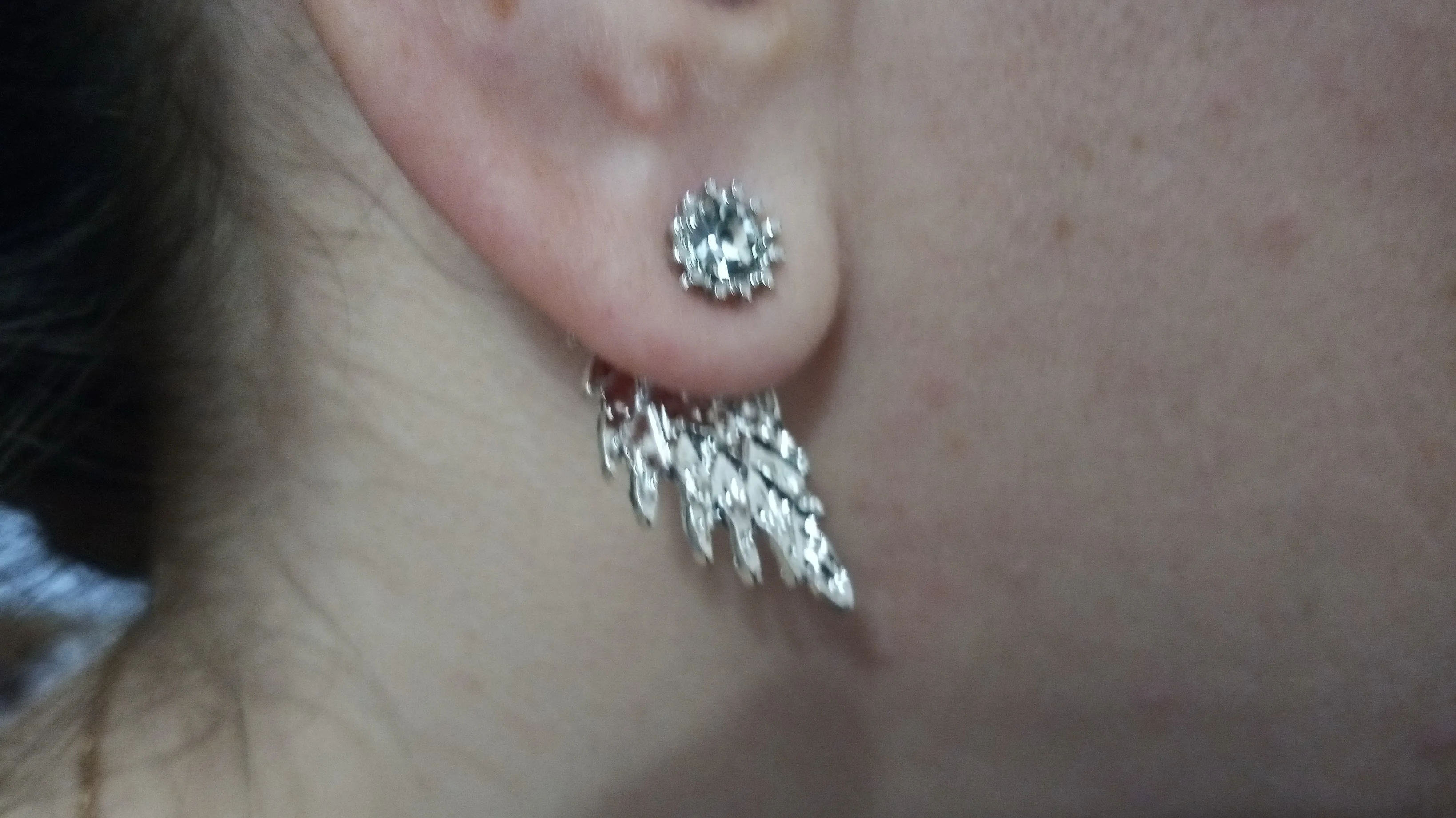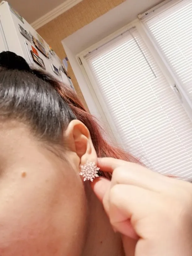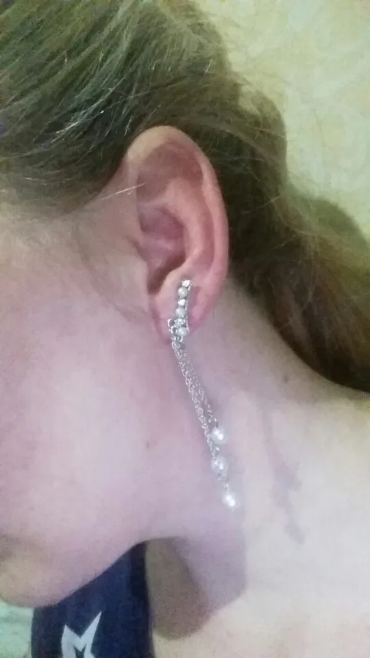 Не подходит тем, у кого мочки ниже середины. Сережки тяжёлые, оттягивают мочку. Для моих ушей не подходит ((( так ждала их, расстроенна до нельзя. А выглядят очень красиво