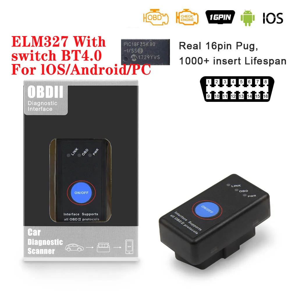 Автомобильный диагностический сканер ELM 327 V1.5 PIC18F25K80 OBD2, беспроводной BT4.0 Wi-Fi USB-сканер OBD 2 OBD2, сканер elm327 v1.5 для AndroidIOS