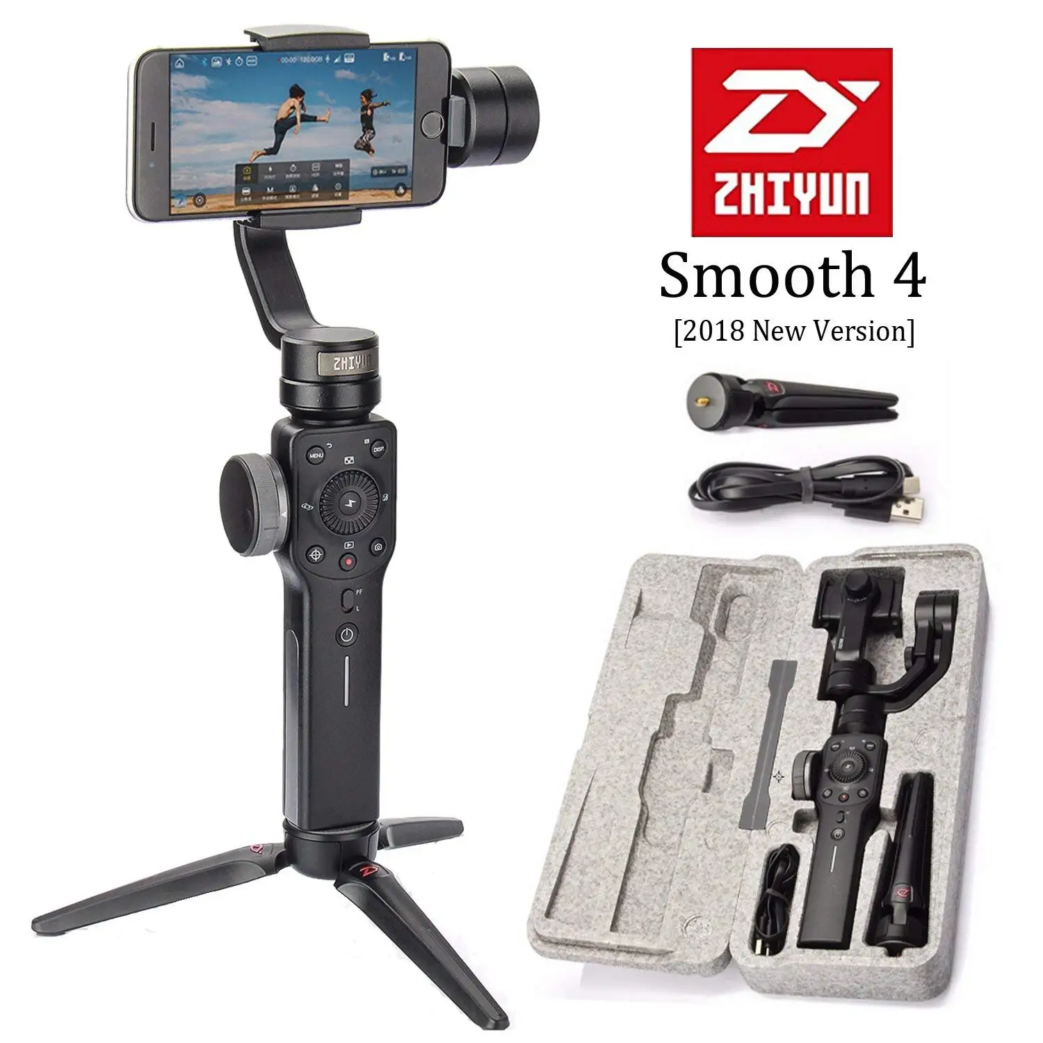 Ручной Стабилизатор Zhiyun Smooth 4, для iPhone Xs Max, X, 8, 7, Samsung S9,S8, экшн-камеры