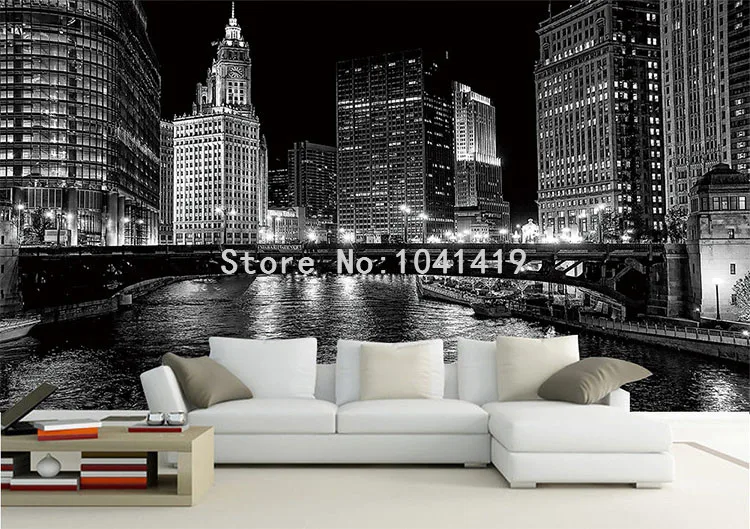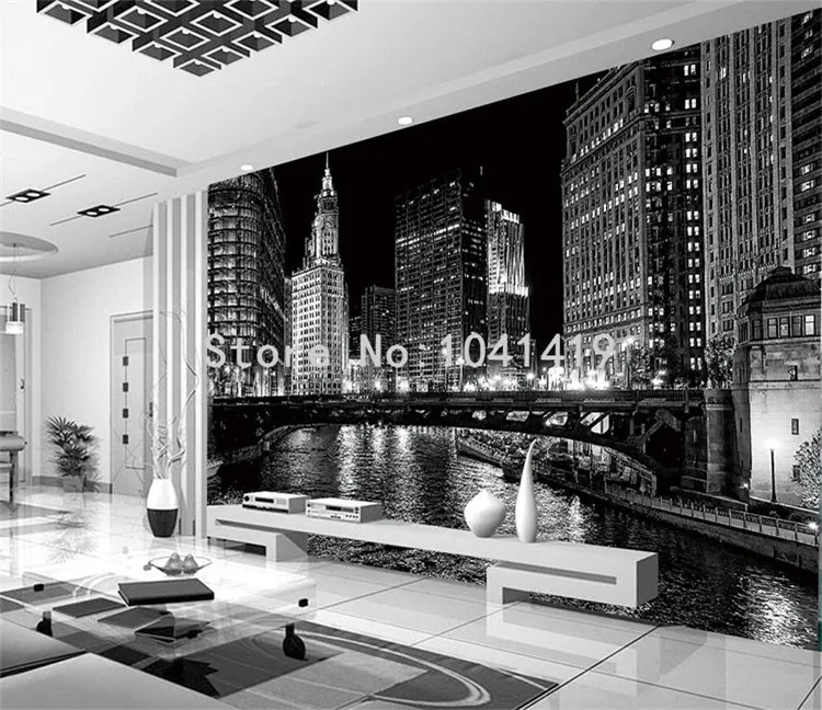Пользовательские 3D Настенные обои черно-белый город ночной пейзаж фрески Гостиная ТВ фон стены Современные Простые обои