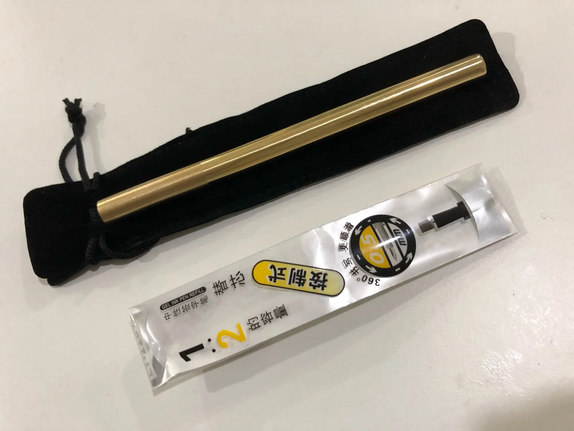 Добротная, крепкая ручка. Качество хорошее. В комплекте идёт гелиевый стержень и специальный, довольно качественный, чехол из бархатной ткани.
