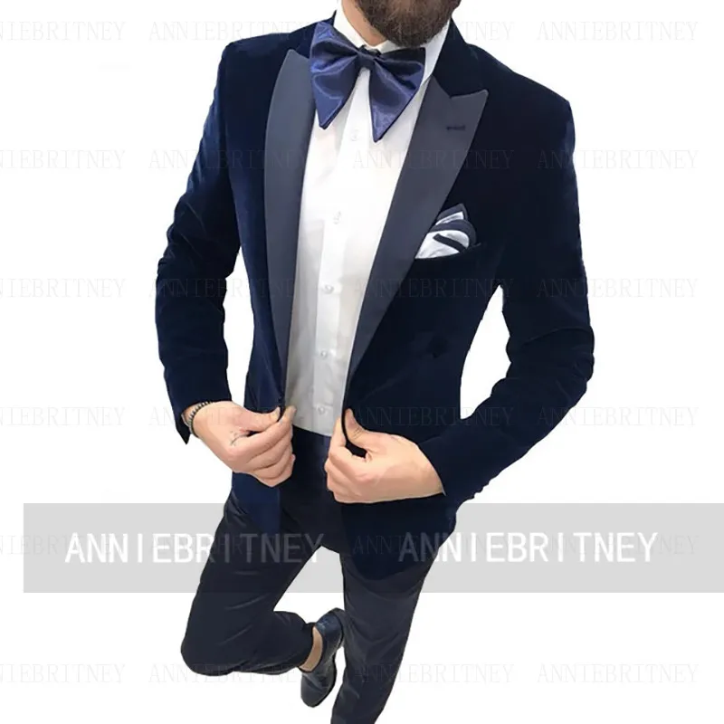 Новейший дизайн пальто и брюк темно-синий двубортный бархатный мужской костюм формальный приталенный свадебный смокинг индивидуальный мужской блейзер для жениха