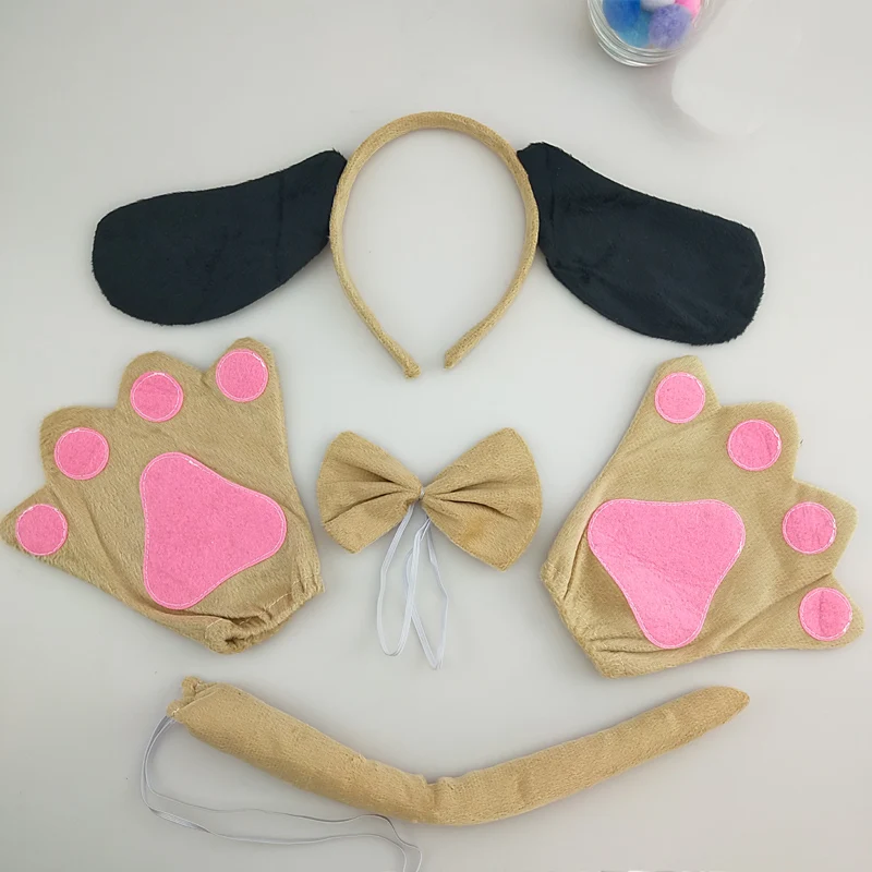 Повязка на голову с ушками далматинской собаки, бант, хвост, лапы, дети, взрослые, животные, косплей, резинки для волос, плюшевые, для Хэллоуина, дня рождения, очистка
