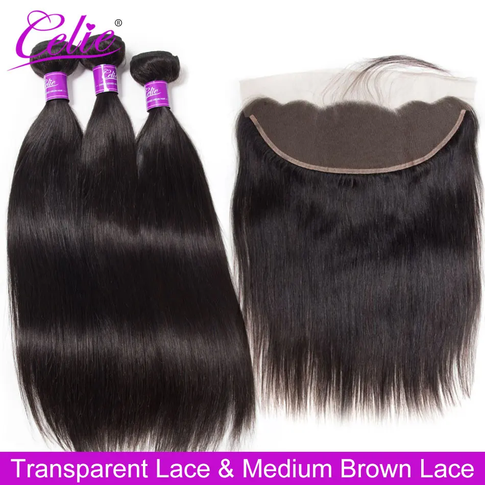 Celie HD прозрачное кружевное фронтальное закрытие с пряди перуанские прямые волосы с фронтальным человеческие волосы 3 пряди с закрытием