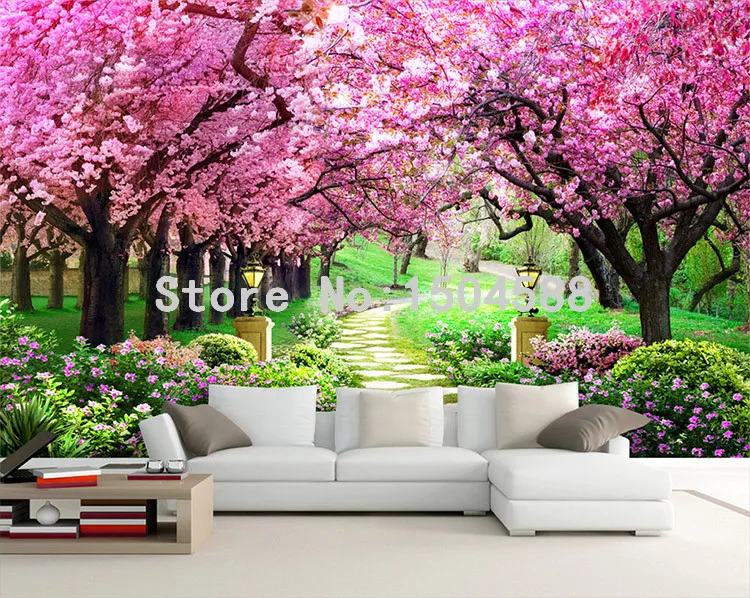 3D обои, размер под заказ, Вишневое дерево, садовая дорожка, пейзаж, настенная роспись, гостиная, спальня, 3D обои