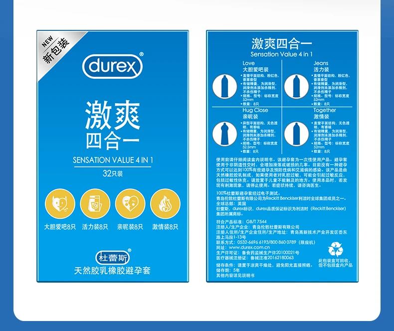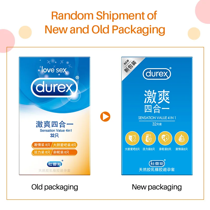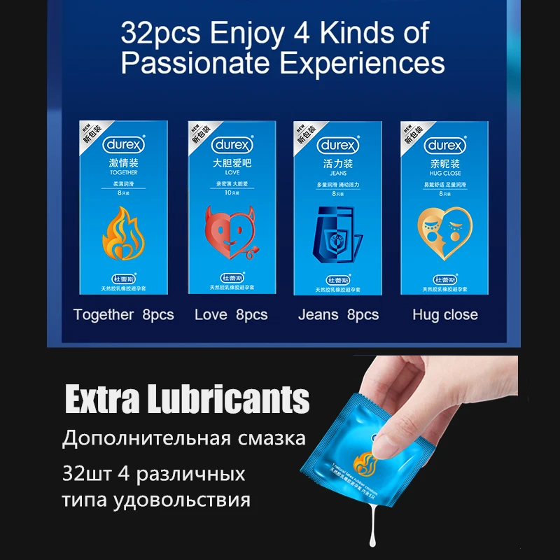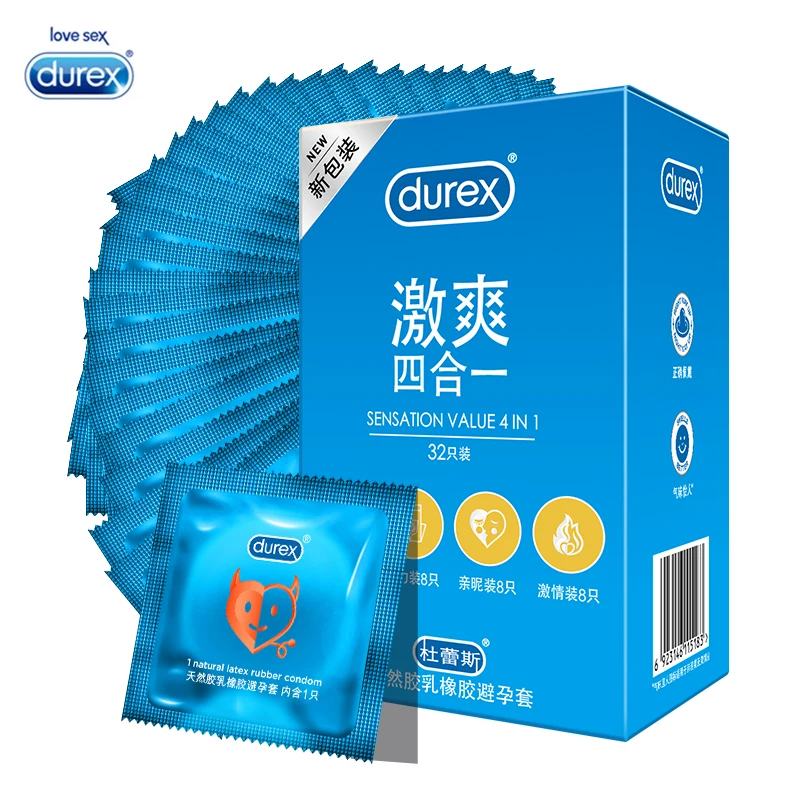 Презервативы Durex из натурального латекса, гладкие, со смазкой, 4 вида, 32 шт.кор.