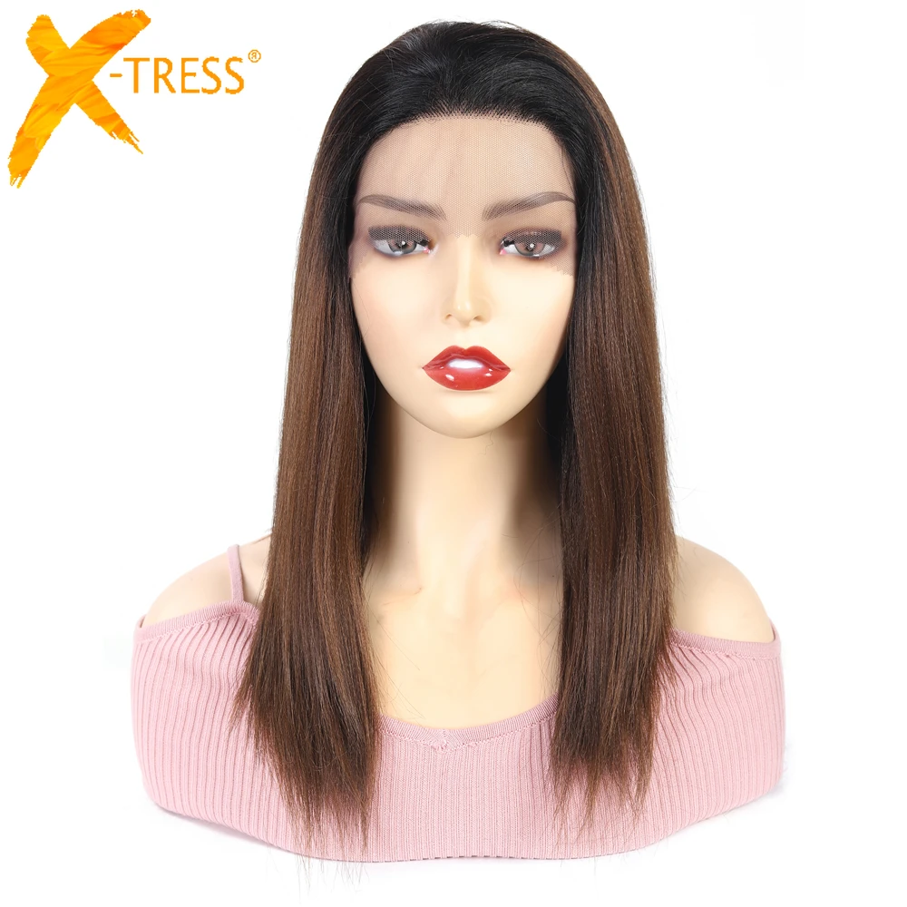 Омбре коричневые синтетические кружевные волосы парики для женщин высокая температура волокна волос X-TRESS прямые парики шнурка свободная часть с волосами младенца