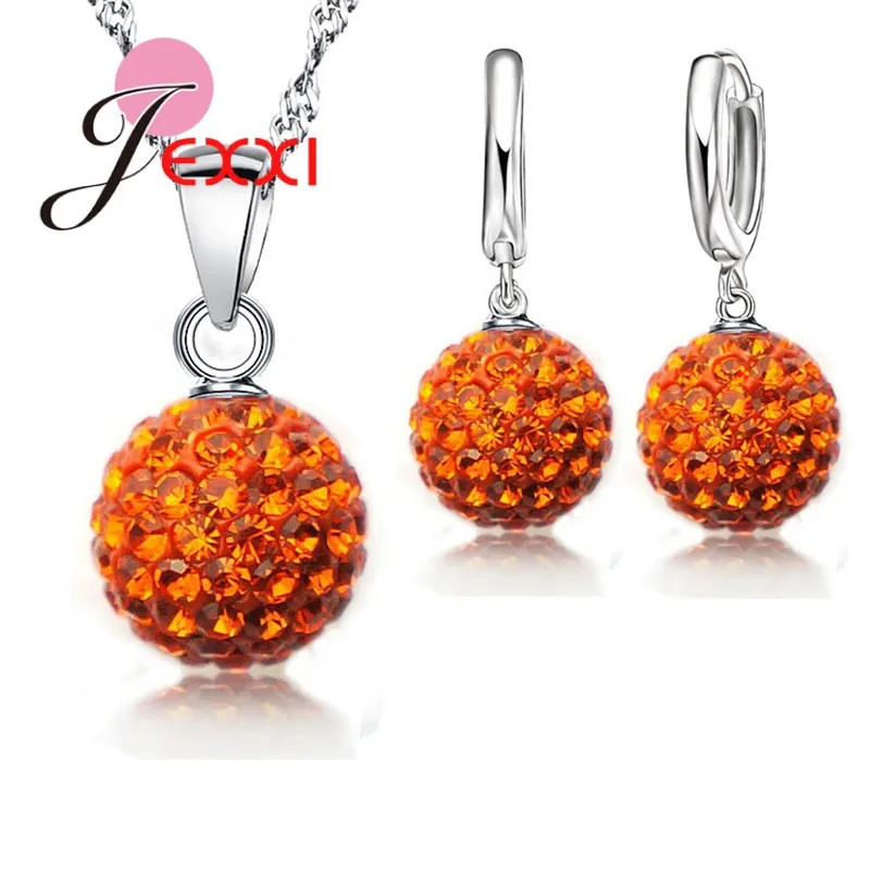 Самые горячие новые комплекты ювелирных изделий 925 высокого качества из серебра с украшением в виде кристаллов со стразами чешское стекло диско шар рычаг Серьги женское ожерелье с подвеской