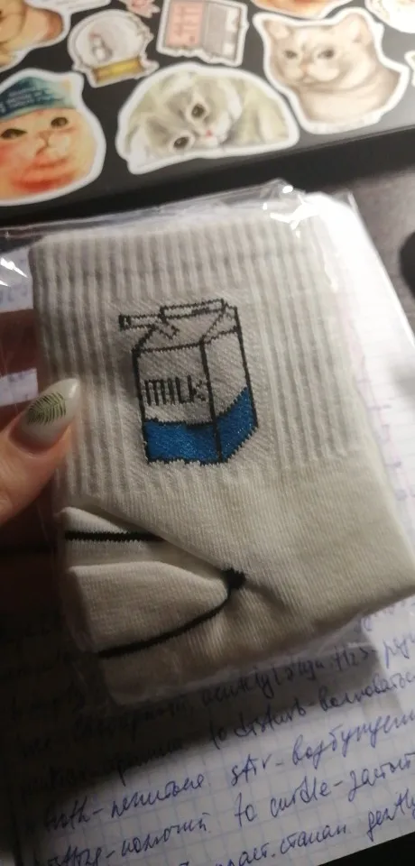 Классные носки, уже не первый раз заказывала. Качество хорошее, принт чёткий, никаких ниток. Правда, идут долго.