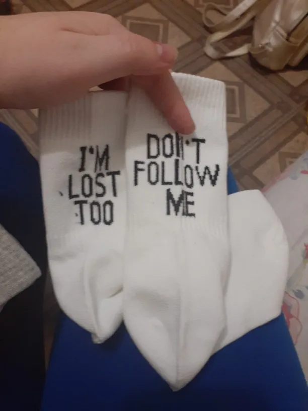 Хороший товар. НО носки одинаковые (рисунок на двух носках в одну сторону, то есть на разных ногах будет рисунок с одной стороны, а надпись с другой)